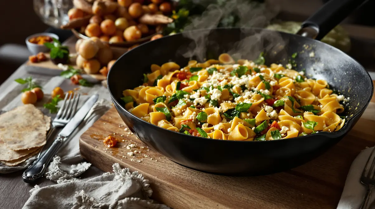 Vous avez l’habitude de faire bouillir un grand volume d’eau, de saler, de jeter les pâtes, puis d’égoutter tout ça dans l’évier ? Et si l’on vous disait qu’il existe une méthode minute, avec une seule poêle, qui donne des pâtes plus crémeuses, plus parfumées, et prêtes en 15 minutes, montre en main ? C’est exactement ce que permet le one-pan pasta crémeux aux épinards et à la feta.