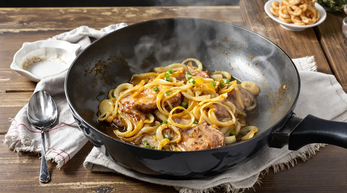 Une poêle qui grésille, des effluves de soja et de gingembre, des oignons qui caramélisent doucement… En quelques minutes, votre cuisine se transforme en petite échoppe d’Asie. Ce bœuf aux oignons express, sucré-salé et ultra tendre, est parfait pour un Nouvel An chinois à la maison. Rapide, réconfortant, et étonnamment simple à réussir.